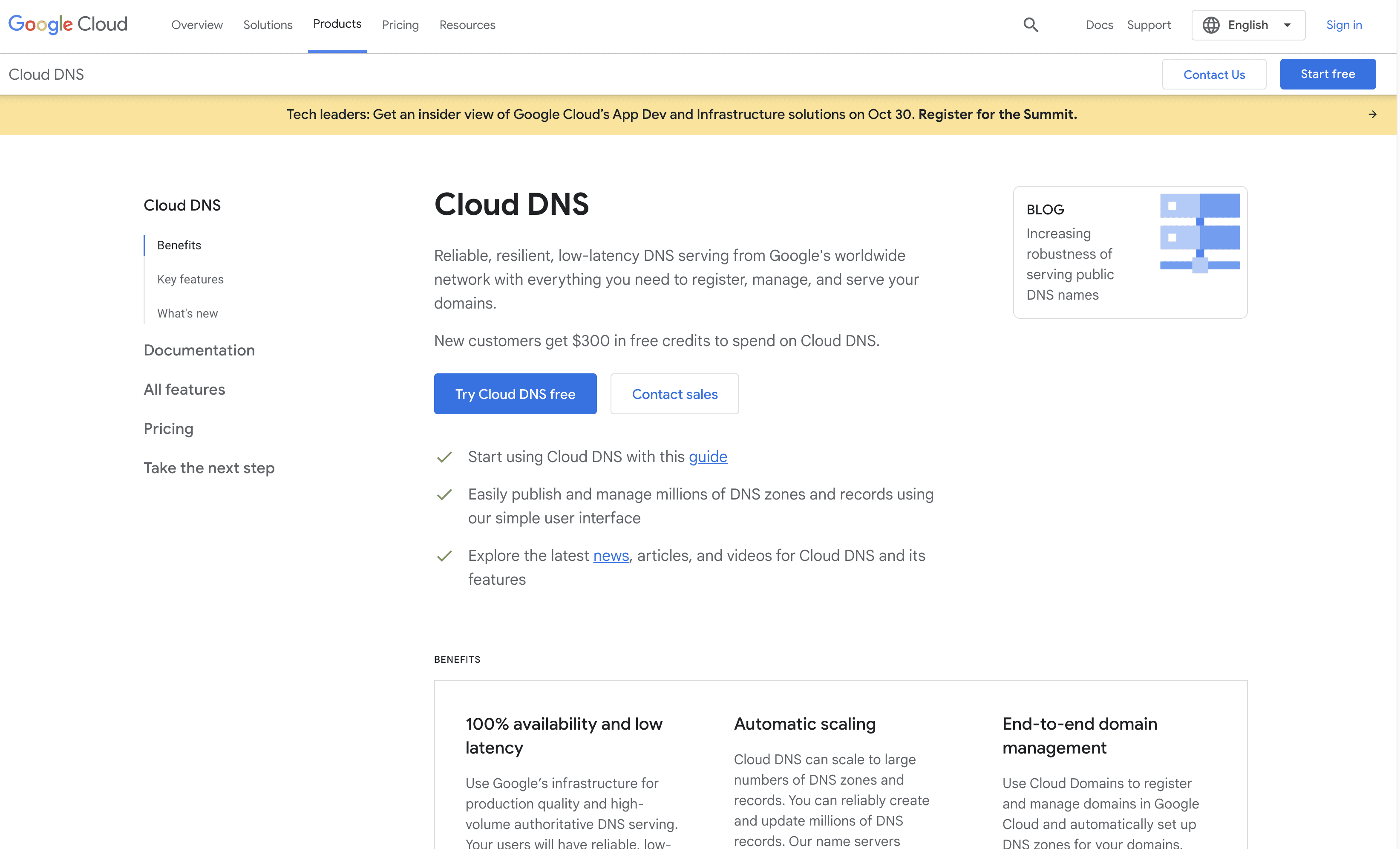 Reliable Performance: Google Cloud DNS leverages Google's global network, ensuring high availability and low latency for DNS queries.