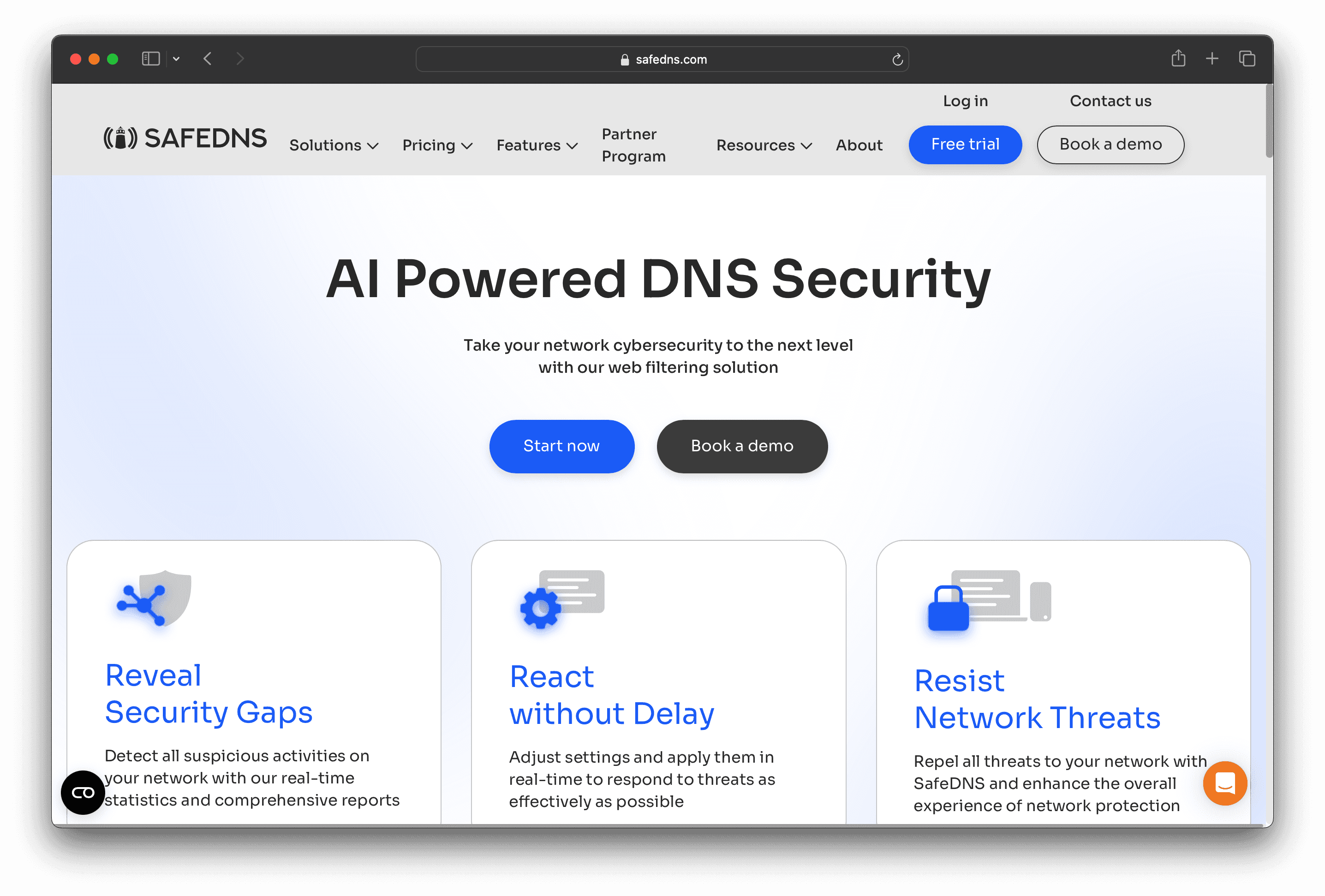 SafeDNS is a cloud-based DNS filtering solution designed to enhance network cybersecurity. It uses AI-driven filtering to protect against phishing, malware, and other online threats. With easy setup and management, SafeDNS is accessible to users without an IT background, making it ideal for businesses of all sizes.